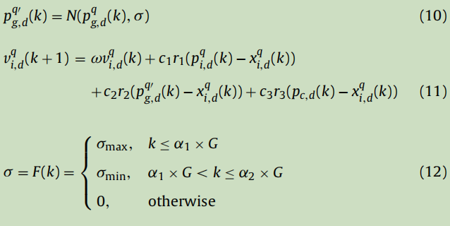 受干扰的全球最佳更新策略公式(4)-(6)应区别于常规的V的突变,即对全局最佳粒子进行随机扰动。p-gbest的功能是鼓励粒子探索超出搜索轨迹定义的区域。通过将与每个gbest相关的不确定性考虑为时间的函数,p-gbest在初期的提供了一个简单而有效勘探,在后期的时候鼓励局部微调。随后,该方法有助于降低早熟收敛的可能性,并引导搜索向有希望的搜索区域进行。