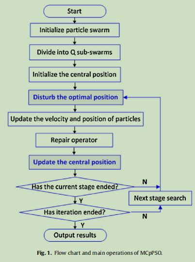 在多群体信息共享和精英扰动引导思想的启发下,提出了一种新型的多群体协作多级扰动引导粒子群优化算法(MCpPSO)。 多群体信息共享的思想是通过不同进化机制的不同子群体之间的信息交流和共享,和谐地提高进化效率。 用从其他子群中获得的有益信息,有可能推动停滞的子群再一次恢复活力。多级精英扰动引导策略的目的是在保持精英学习机制的同时,在一定程度上降低全局最佳个体的学习速度和学习强度。它有效地扩大了探索领域,使粒子的飞行轨迹多样化。提出并分析了全局最佳粒子的中心位置摄动思想、中心位置的不同计算方法和重要参数的影响分析。