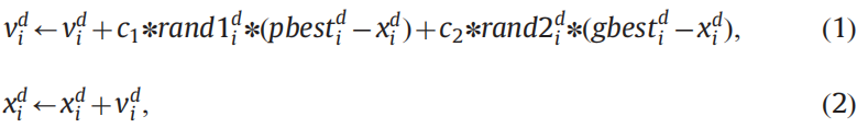其中D是搜索空间维数和gbesti,j表示第i个粒子gbest的全局最佳/邻域最佳成员的第j分量或者是第i个粒子的邻域最佳成员。