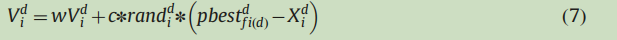 与亚群体组1不同的是,子种群组2中的粒子不仅从使用CL策略生成的样本中学习,也从种群的gbest中学习。因此,亚群体2具有较强的开发利用能力。如果粒子是从他们自己的pbest和gbest学习,它有更可能被困在局部区域。为了避免这种情况,粒子将采用其他粒子的pbest (25%)如图1。同时如果一个粒子的所有范例都是它自己的pbest,我们会随机选择其中的一维去学习另一个粒子的对应该维的pbest。