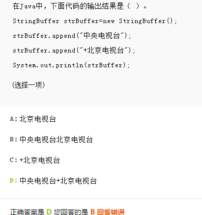 本题考查StringBuffer类的常用方法操纵字符串,Stringbuffer其实是动态字符串数组,append()是往动态字符串数组添加,选择D