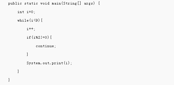 此题考查的是基于while语句的流程控制,由题意可以看出在while循环中,当i为奇数时,执行continue语句,跳过输出语句,执行下一次循环,只有当i为偶数的时候才会执行输出语句,所有最终会输出所有i为偶数的情况的值,故答案选c