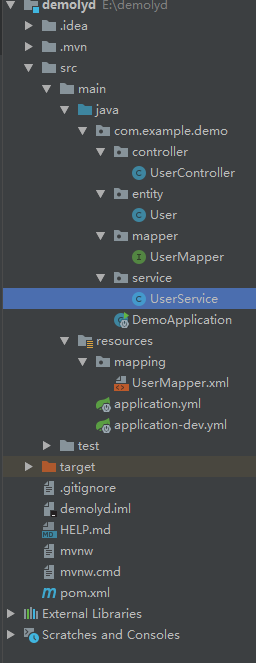 UserController.java -> UserService.java -> UserServiceimpl.java -> UserMapper.java -> UserMapper.xml