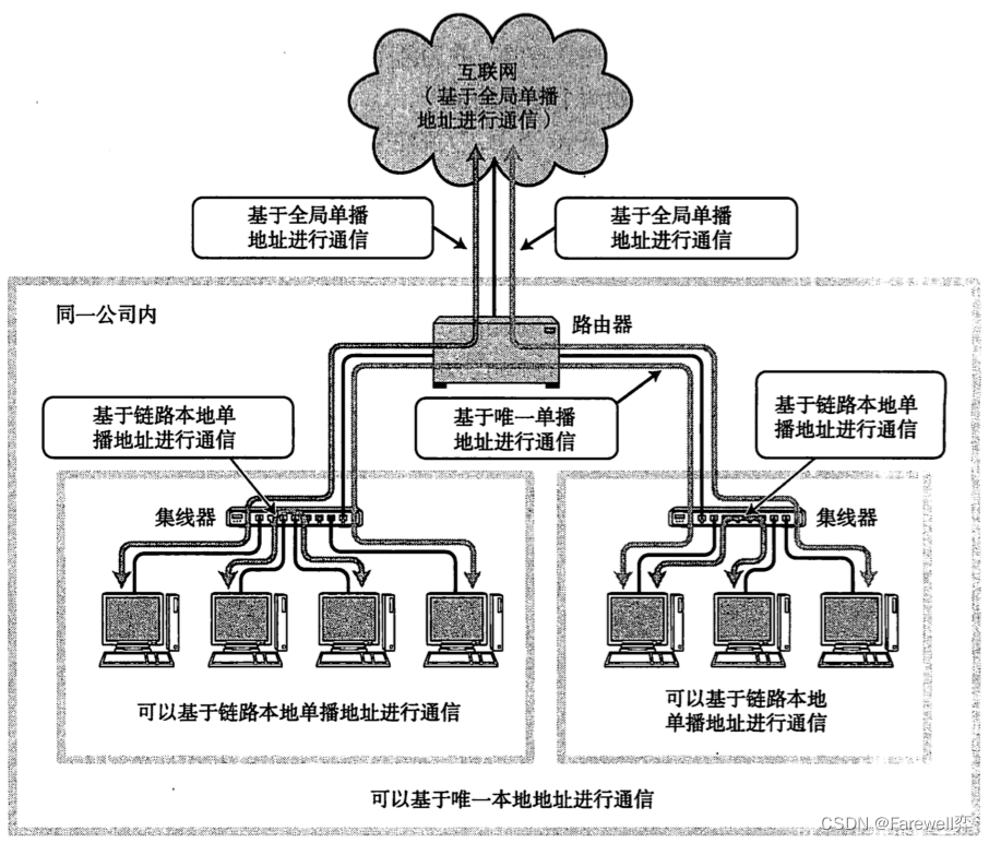 - 而在不使用路由器的一个网段中通信时,还可以使用一种叫做链路本地单播地址的IP地址类型