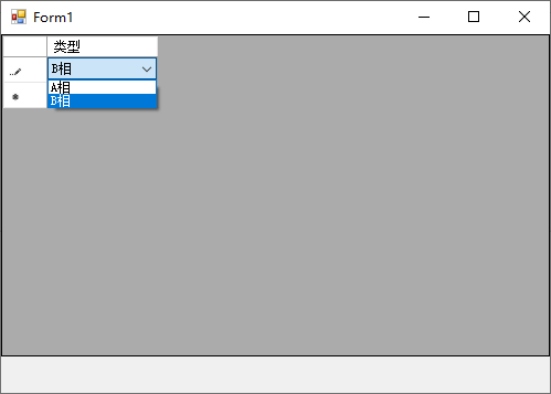 public partial class Form1 : Form { public Form1() { InitializeComponent(); InitDgv(); } BindingList<RowItem> blist = new BindingList<RowItem>(); private void InitDgv() { var column=new DataGridViewComboBoxColumn(); column.HeaderText = "类型"; column.DataPropertyName = nameof(RowItem.T); column.DataSource = Enum.GetValues(typeof(TypeEnum));//设置Combbox下拉列表, //此处不应该调用column.Items.Add() dataGridView1.Columns.Add(column); blist.Add(new RowItem()); dataGridView1.DataSource = blist; } }