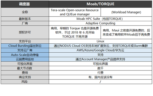 Moab/TORQUE合在一起是一个完整调度器的功能,现在属于同一家公司Adaptive Computing。90年代中期由MHPCC的David Jackson开发的Maui,他后来创立了Adaptive Computing。