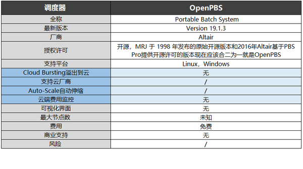 2016年Altair基于PBS Pro提供了开源许可版本,其与MRJ于1998年发布的原始开源版本两者合二为一大致就是现在的OpenPBS。与Pro版本比,多了很多限制,但都支持Linux和Windows。