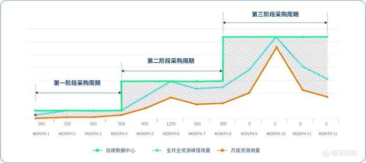自建数据中心先建设,后使用。可能出现三种情况: