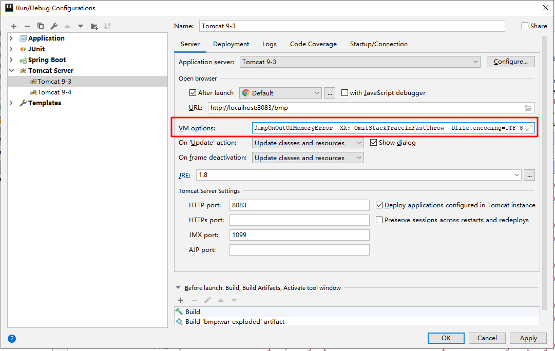 找到安装idea的目录,bim目录下idea64.exe.vmoptions文件的内容复制粘贴到edit configration中的vm options中即可