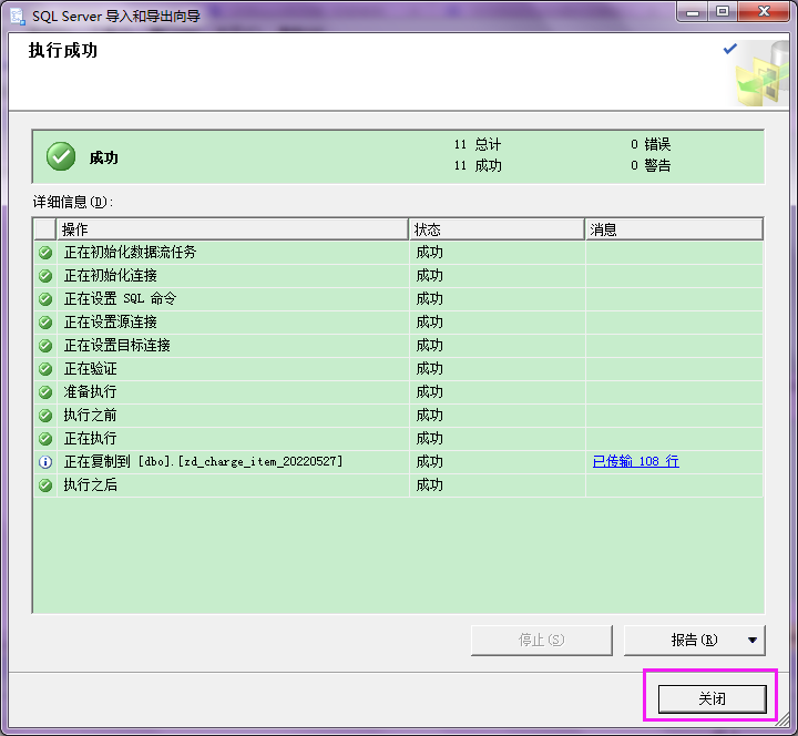 10.弹出下图所示对话框,导入成功,点击【关闭】。