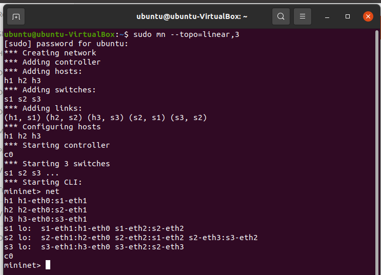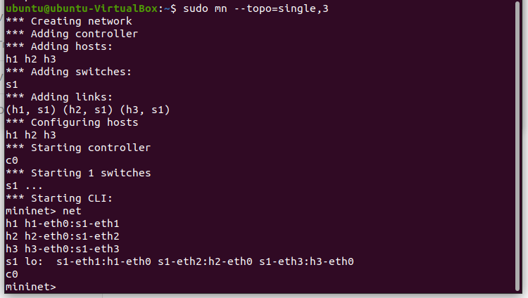 - 在基本要求第三项工作添加新主机的过程中发现仅输入命令添加主机和链路无法实现,还需自行为交换机添加新端口和为新主机设置IP才能实现。