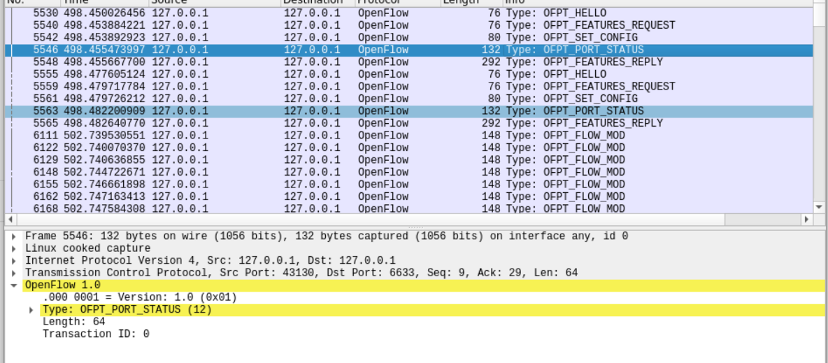 - 从交换机43130端口到控制器6633端口当交换机端口发生变化时,告知控制器相应的端口状态