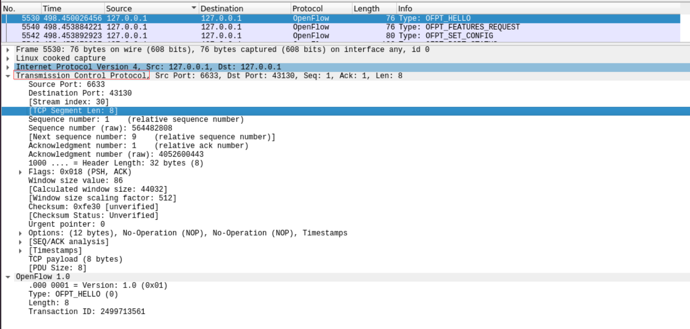 3.回答问题:交换机与控制器建立通信时是使用TCP协议还是UDP协议?