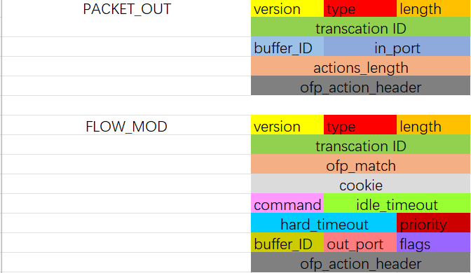 将抓包基础要求第2步的抓包结果对照OpenFlow源码,了解OpenFlow主要消息类型对应的数据结构定义。