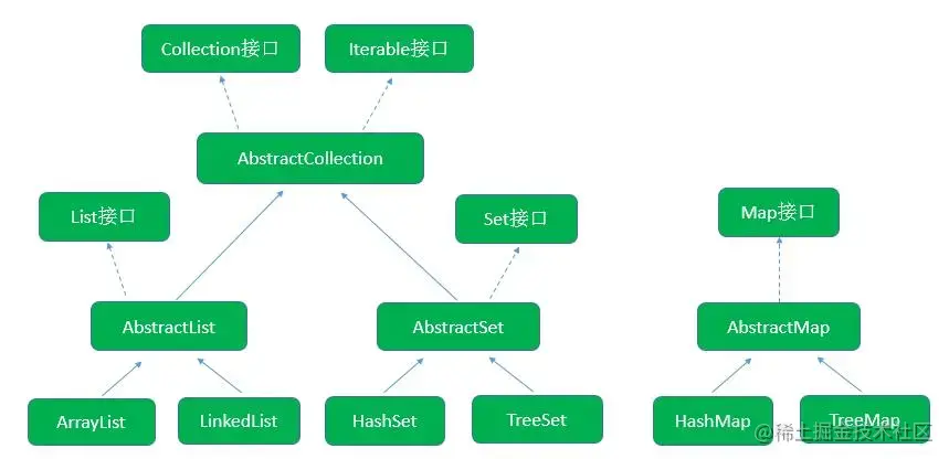 接口:即表示集合的抽象数据类型。接口提供了让我们对集合中所表示的内容进行单独操作的可能。