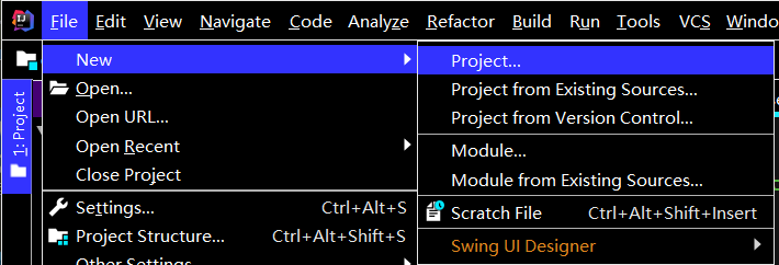 1 打开新建项目弹框,在 idea 起始页面 点击Create New Project ; 在打开项目情况下 File => New => Project