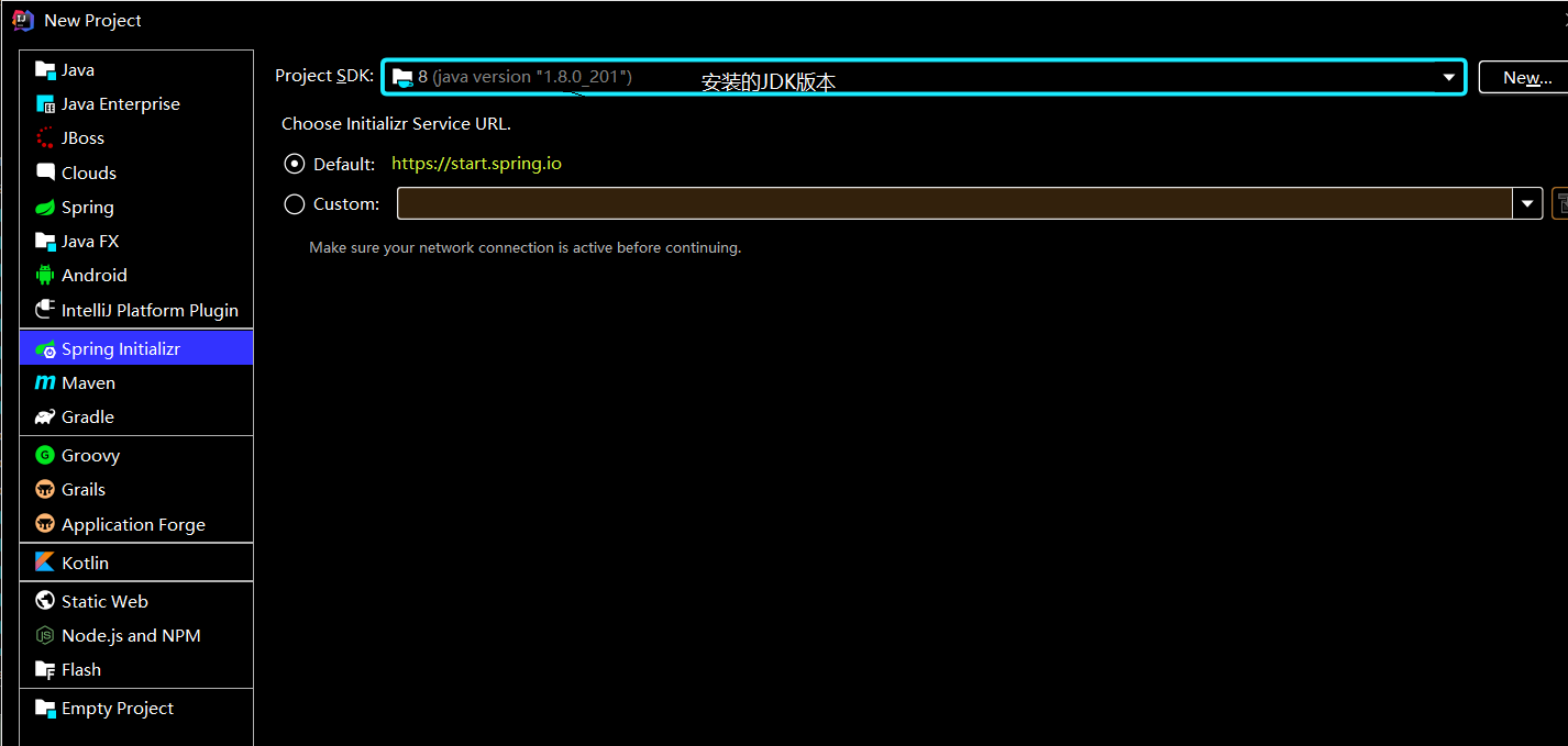 2 在弹框中左侧选择 Spring Initializr => Project SDK(JDK版本) => Next