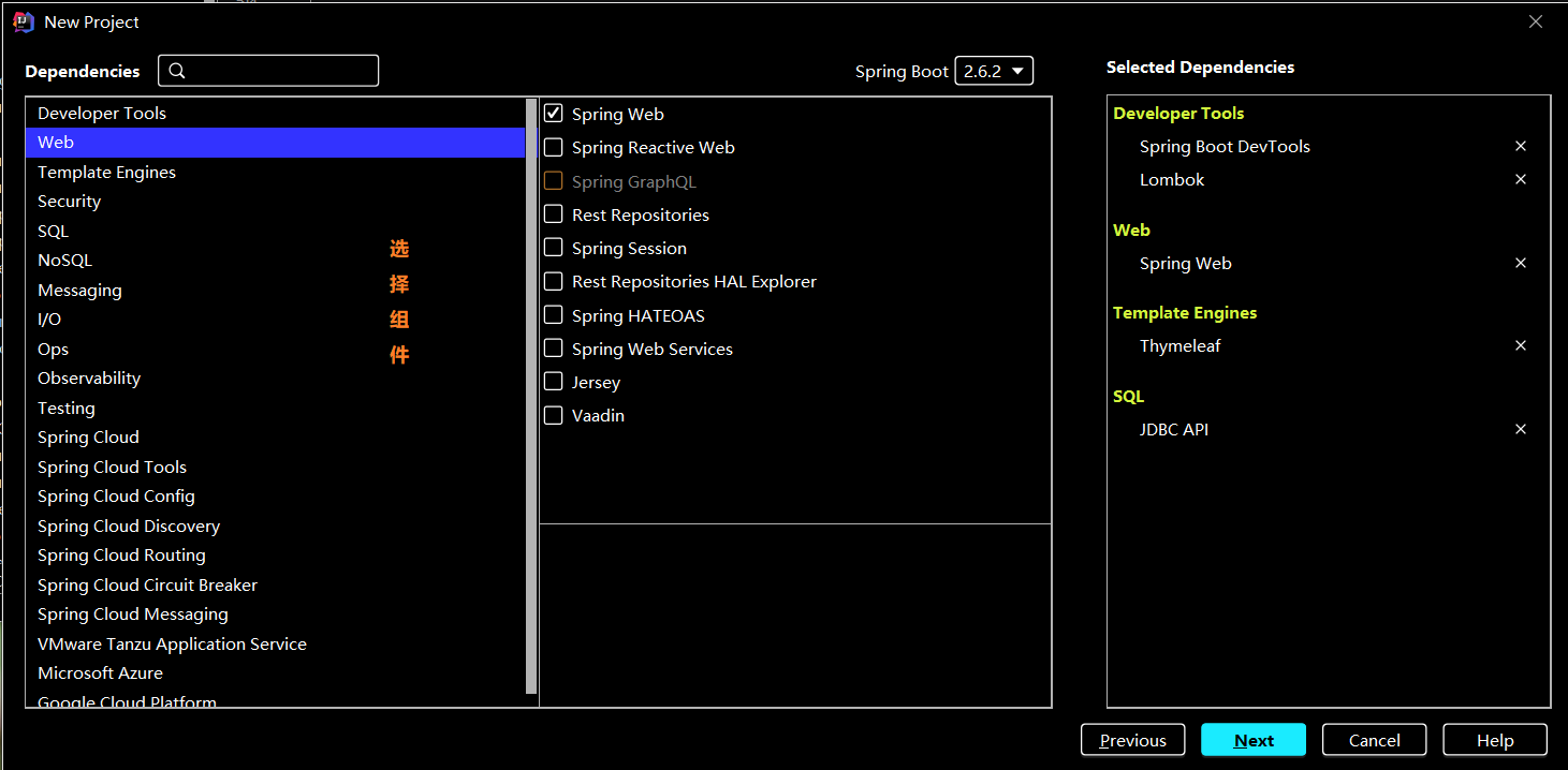 4 选择需要的组件(之后可在Maven中添加)=> Next