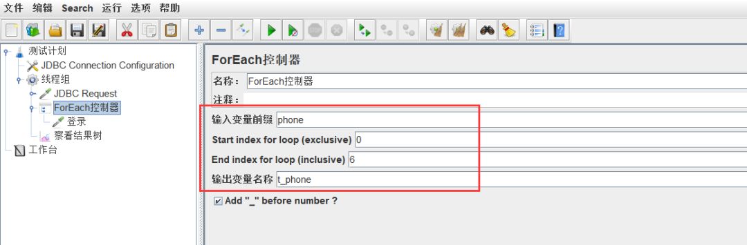 从之前的jdbc request设置的变量得知,我们要取的值为phone_1、phone_2、phone_3......,所以这里输入phone