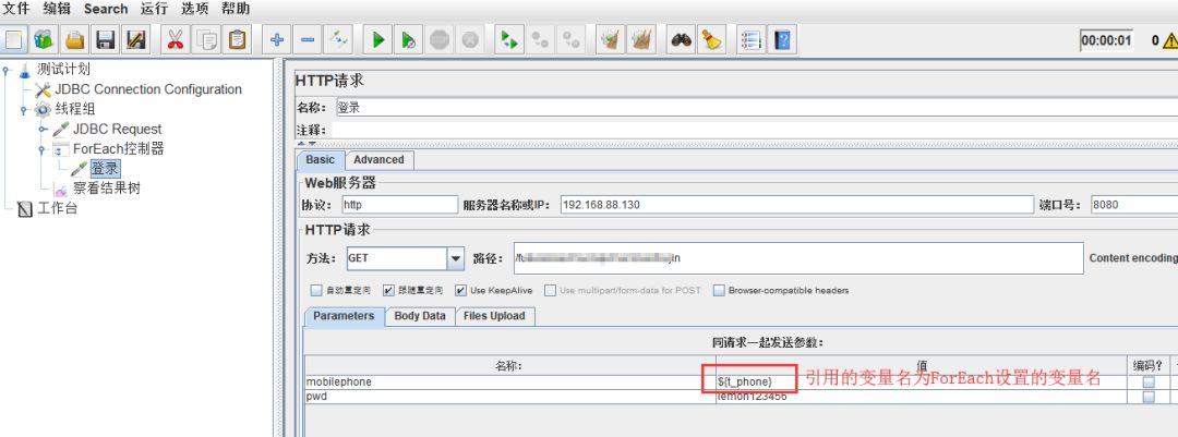 2、在ForEach控制器下添加登录请求,并进行变量引用