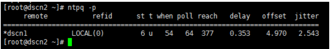 remote:本机和上层ntp的ip或主机名,“+”表示优先,“*”表示次优先 refid:参考上一层ntp主机地址 st:stratum阶层 when:多少秒前曾经同步过时间 poll:下次更新在多少秒后 reach:已经向上层ntp服务器要求更新的次数 delay:网络延迟 offset:时间补偿 jitter:系统时间与bios时间