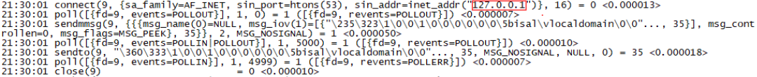 尝试注释resolv.conf中的IP,再次登录,这次秒出了,而且看strace的记录,socket请求的是127.0.0.1,直接访问本地了,