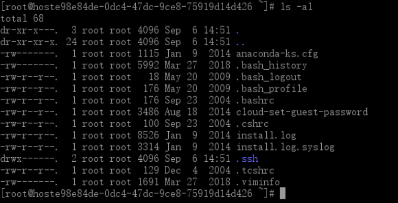 用root登陆系统,敲下“ls -al”(作用:列出所有的档案的详细权限与属性(包括隐藏文件))