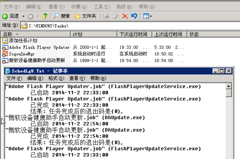 当入侵者得到远程系统的shell之后,常会利用计划任务运行功能更加强大的木马程序,计划任务日志详细的记录的计划任务的执行时间,程序名称等详细信息。