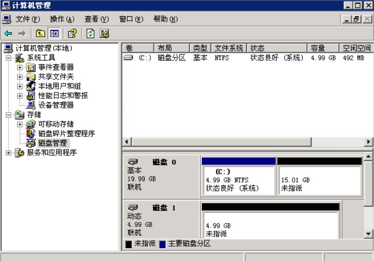 完成添加过程后会发现多了一块磁盘1,如下图: