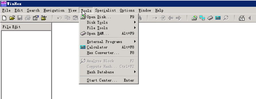 打开桌面tools\WinHex文件夹,双击运行WinHex程序。