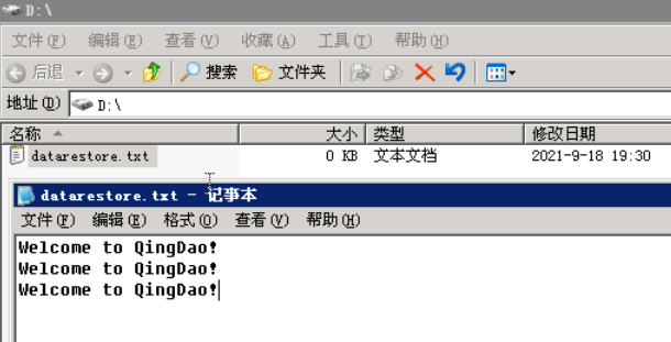 关闭winhex,打开D盘(新建立的分区),建立一个文本文件,命名为:datarestore.txt,并添加内容。