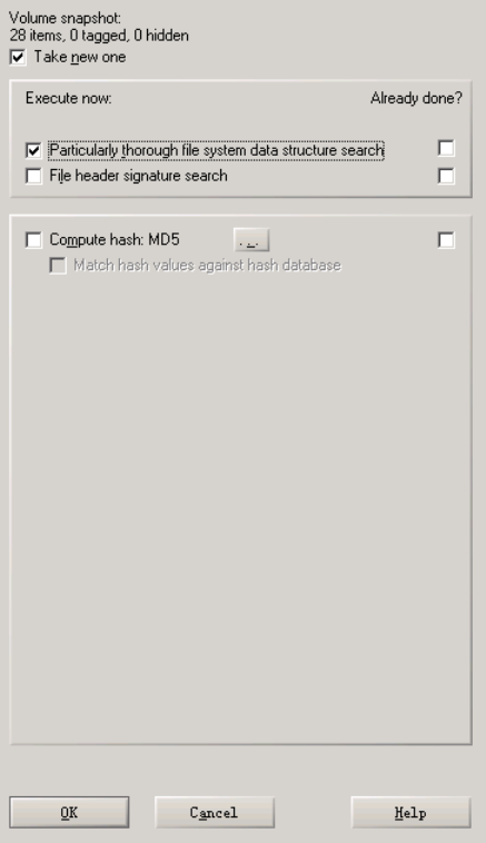 勾选“获取新快照”与“彻底搜索文件系统数据结构”,然后点击“确定”:
