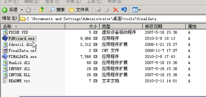 1、打开桌面上tools\finaldata文件夹,找到应用程序“FdWizard”