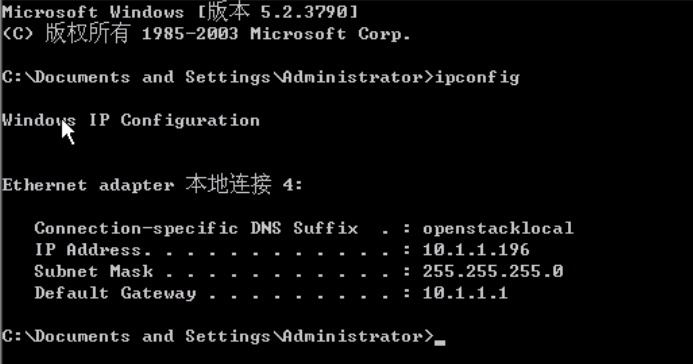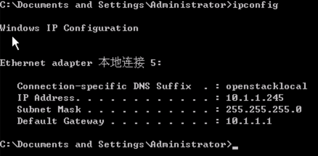 1、远程桌面方式登录到CA服务器,在CMD下查看本机IP地址:CA服务器IP为10.1.1.245