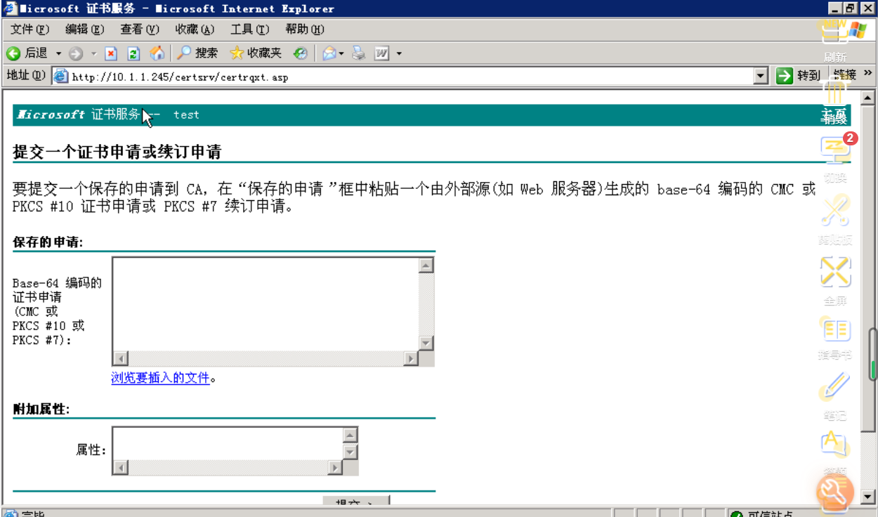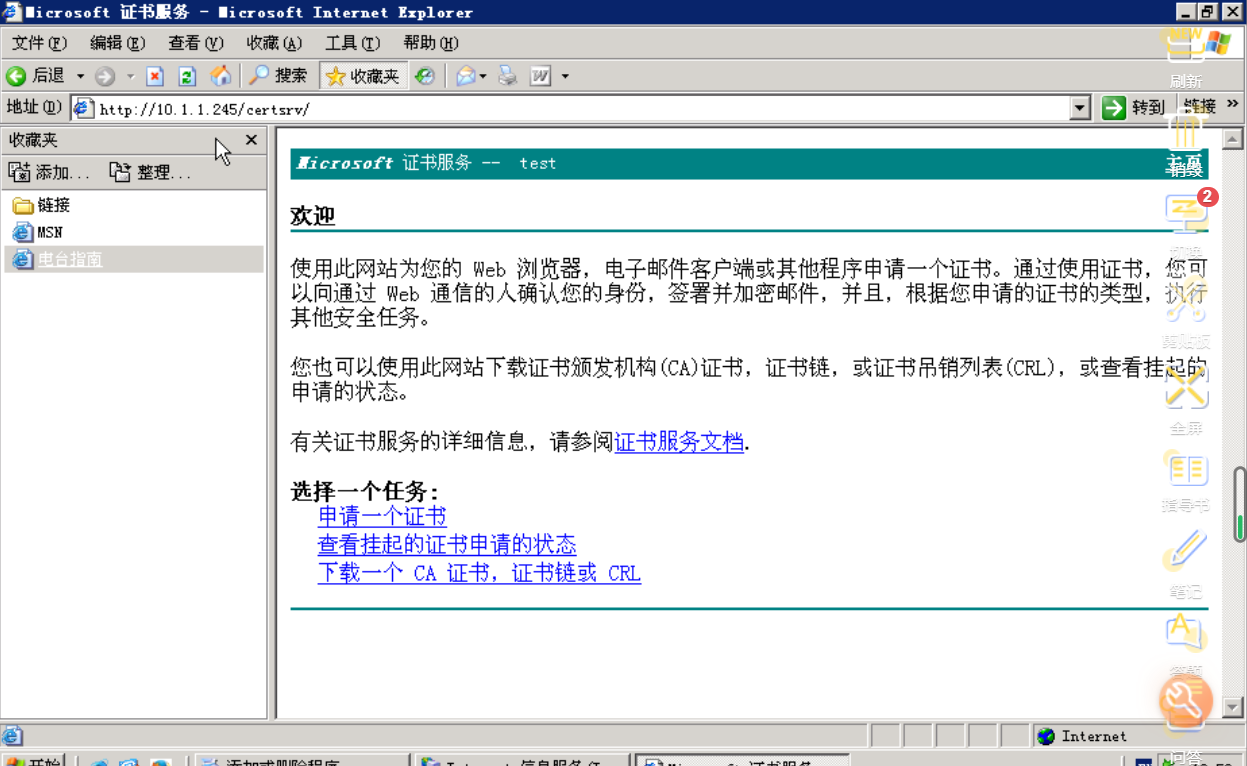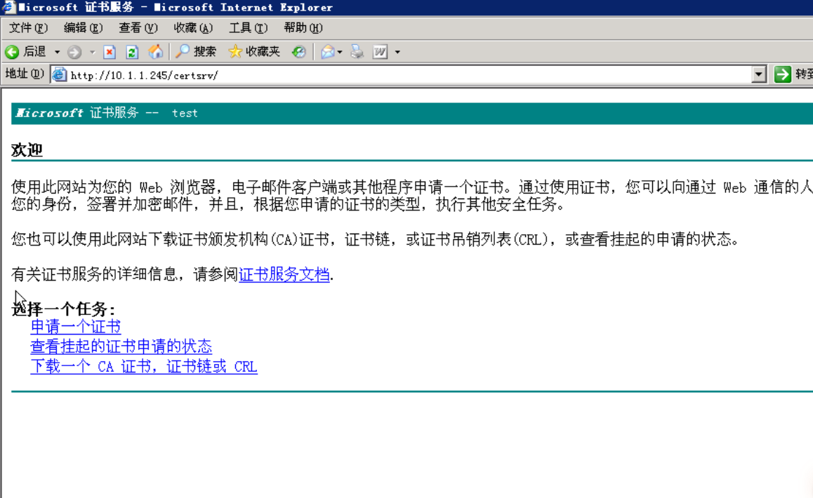 打开浏览器输入 http://10.1.1.245/certsrv/ 可以浏览证书服务器