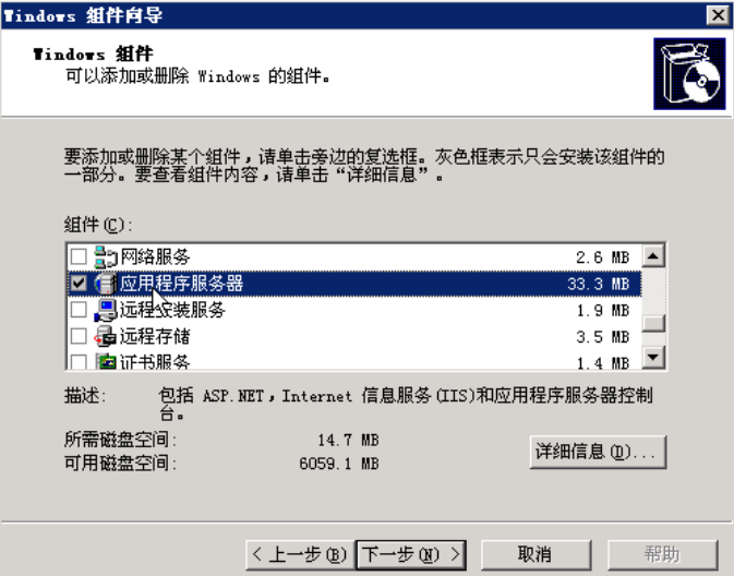 按照搭建CA服务器的方法安装IIS,区别是只选择“应用程序服务器”,如下图: