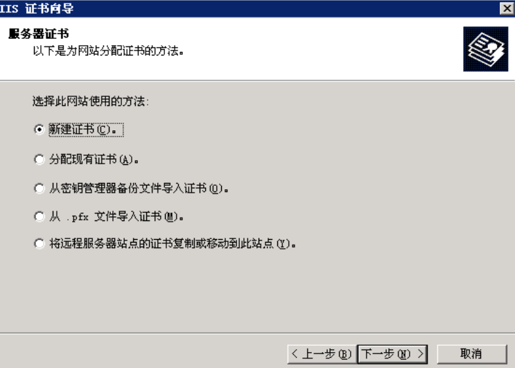 会出现安装向导,点击下一步,出现如下对话框,保持默认选项“新建证书”不动,继续下一步, 继续保持默认选项,单击下一步,