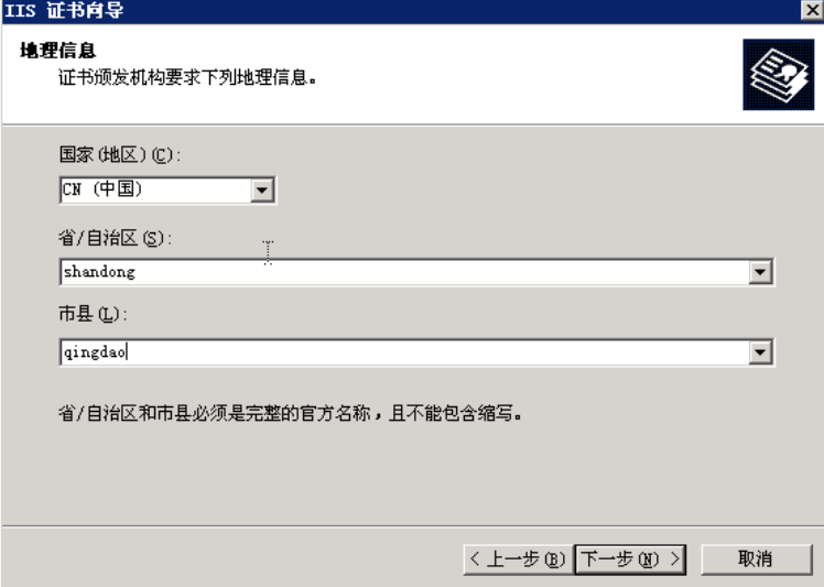 在下一步中输入证书的相关信息: