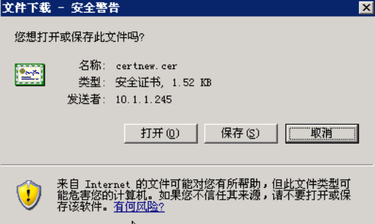 输入https://10.1.1.196 (按照实际情况),会出现一个证书安全问题的确认,单击“是”,进行浏览: