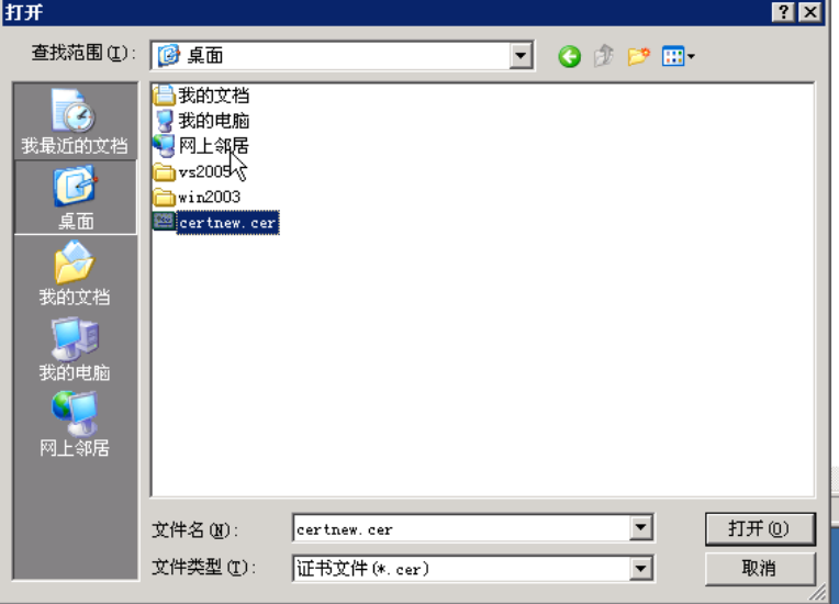 将证书保存到桌面,以便查找,可以看到桌面上的证书文件。
