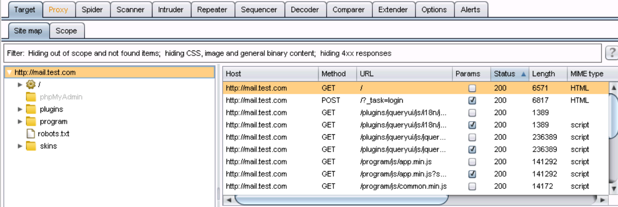 这里我们先使用burpsuite对该站点进行目录扫描。