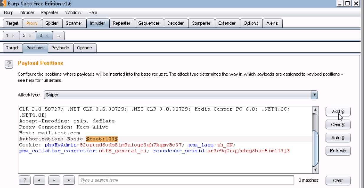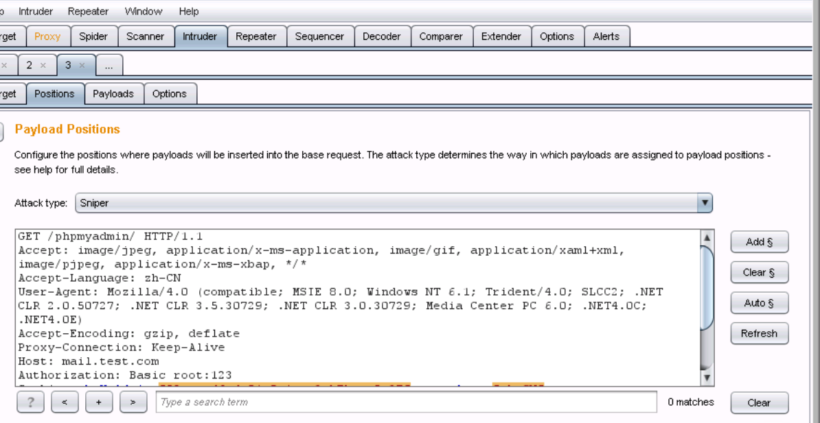 8、右键send to intruder,在Positions选项卡下单击clear$。