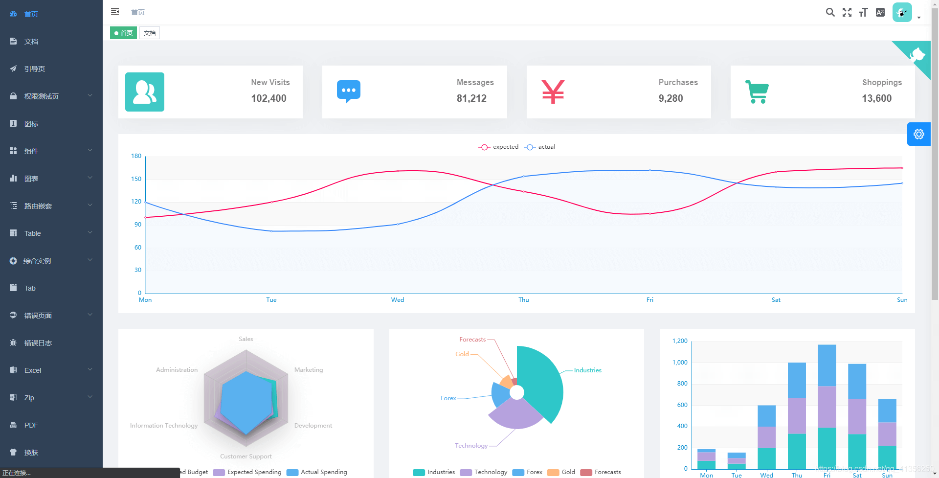nx-admin (github上的标星数为2.3k 2.5k) 是一个开源的管理系统前端集成方案,它基于 Vue 和 Element。它使用了最新的前端技术栈,内置了i18国际化解决方案,动态路由,权限验证,提炼了典型的业务模型,提供了丰富的功能组件,它可以帮助你快速搭建企业级中后台产品原型。最大程度上帮助个人,企业节省时间成本和费用开支。