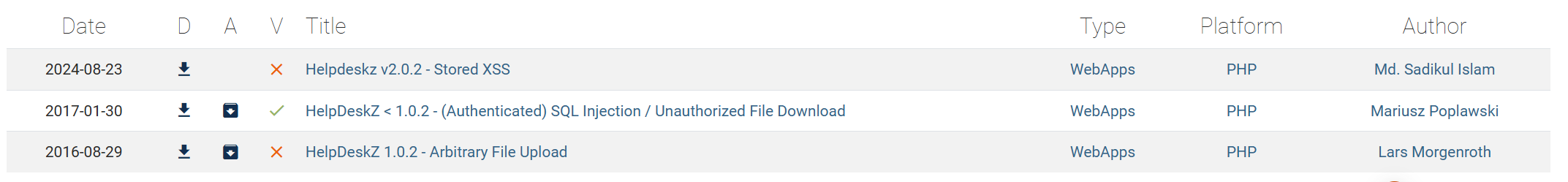 HelpDeskZ = v1.0.2 存在未经身份验证的 shell 上传漏洞。