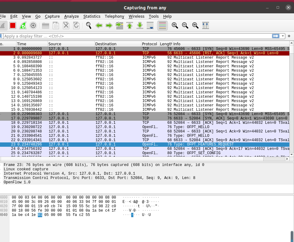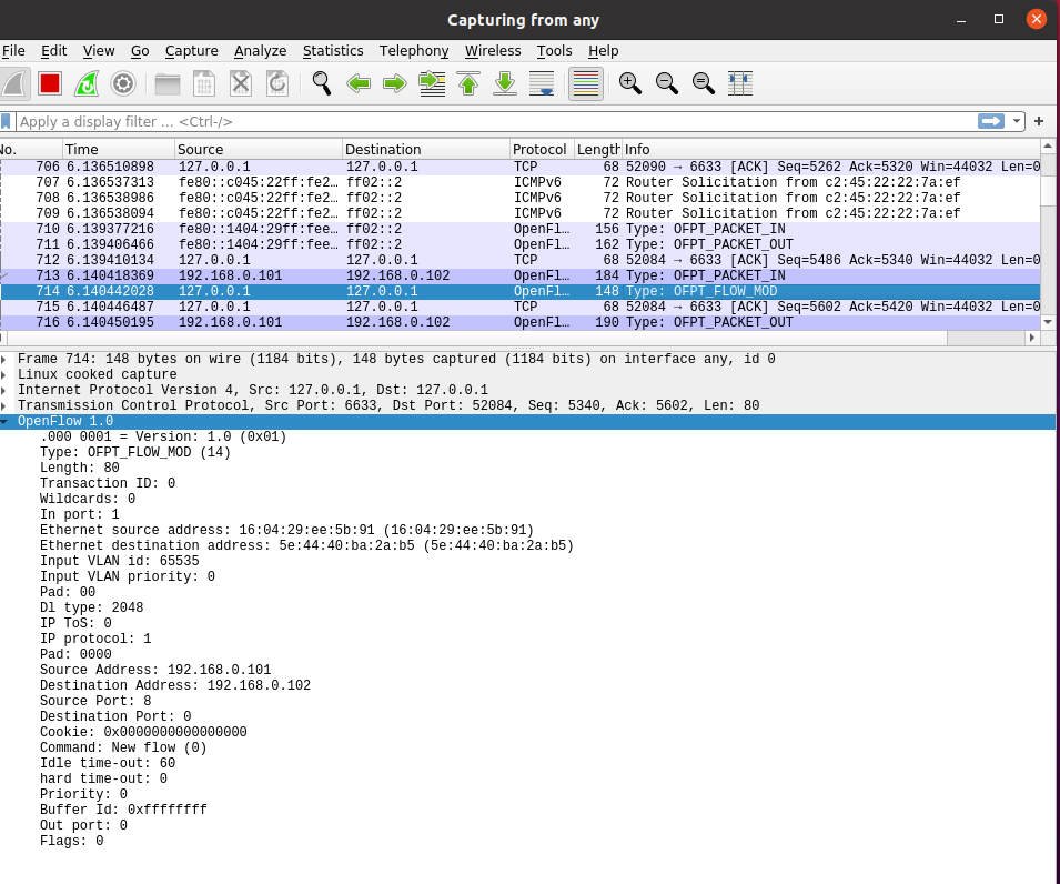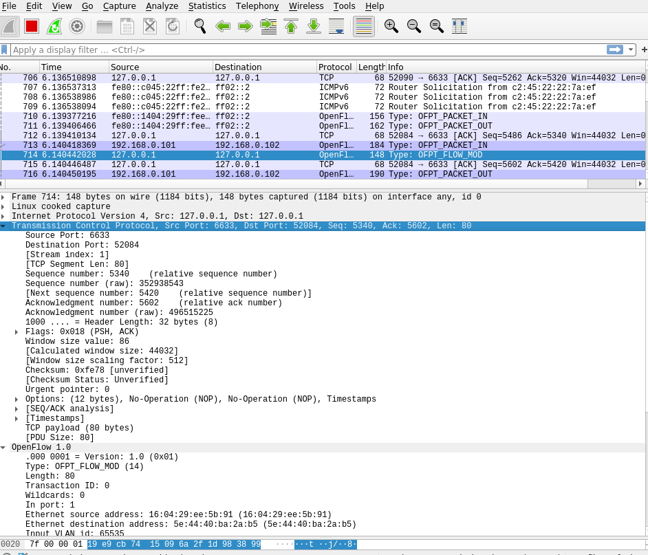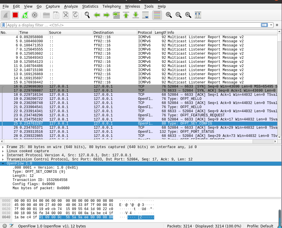 控制器6633端口(请按照我给你的flag和max bytes of packet进行配置) ---> 交换机52084端口