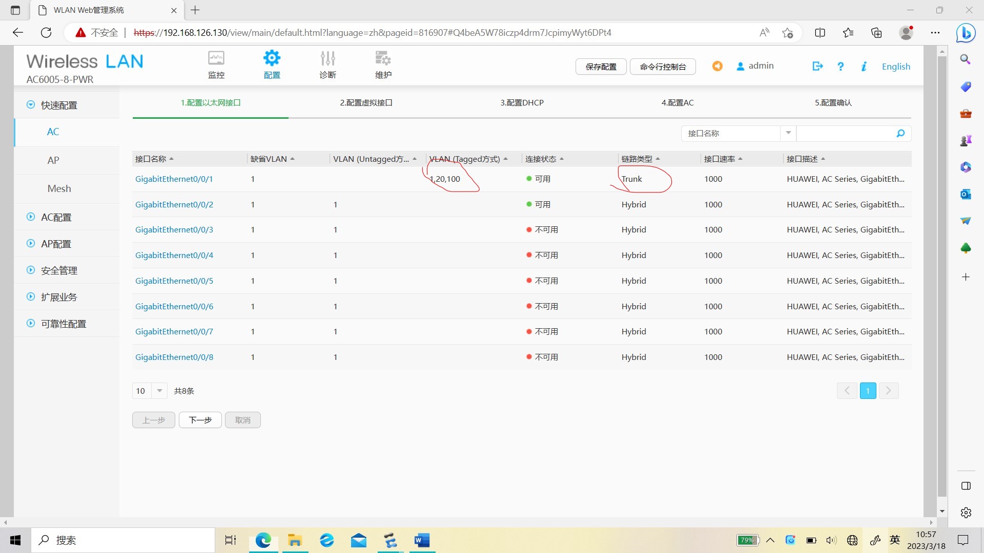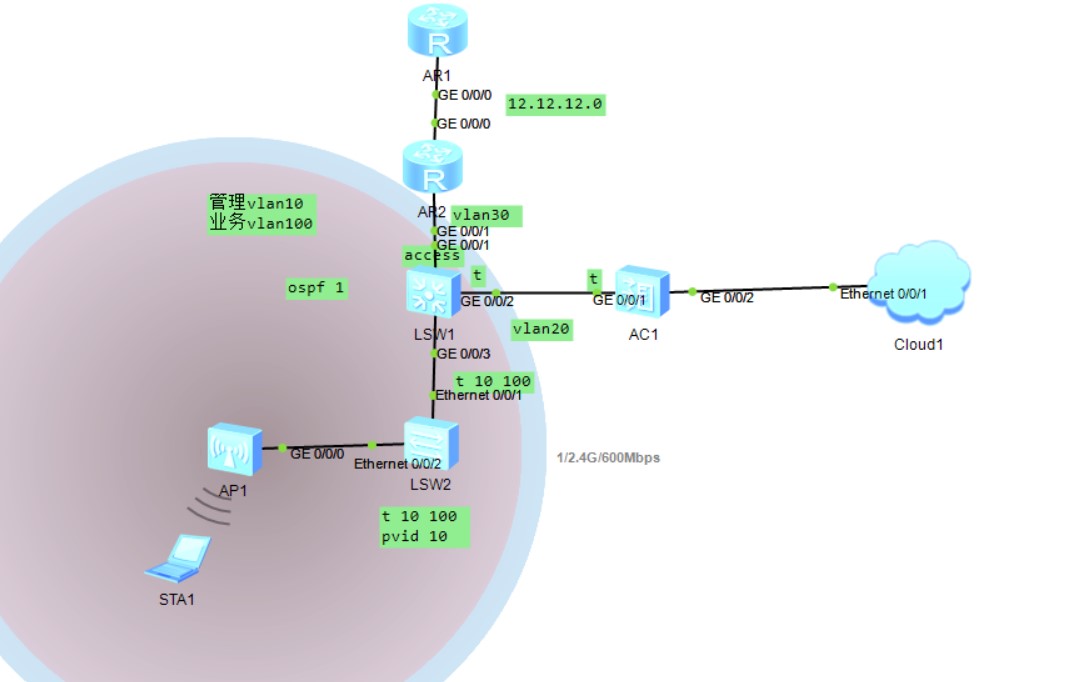 在ac1上配置与cloud相关网段的vlan1,同时开启HTTP服务