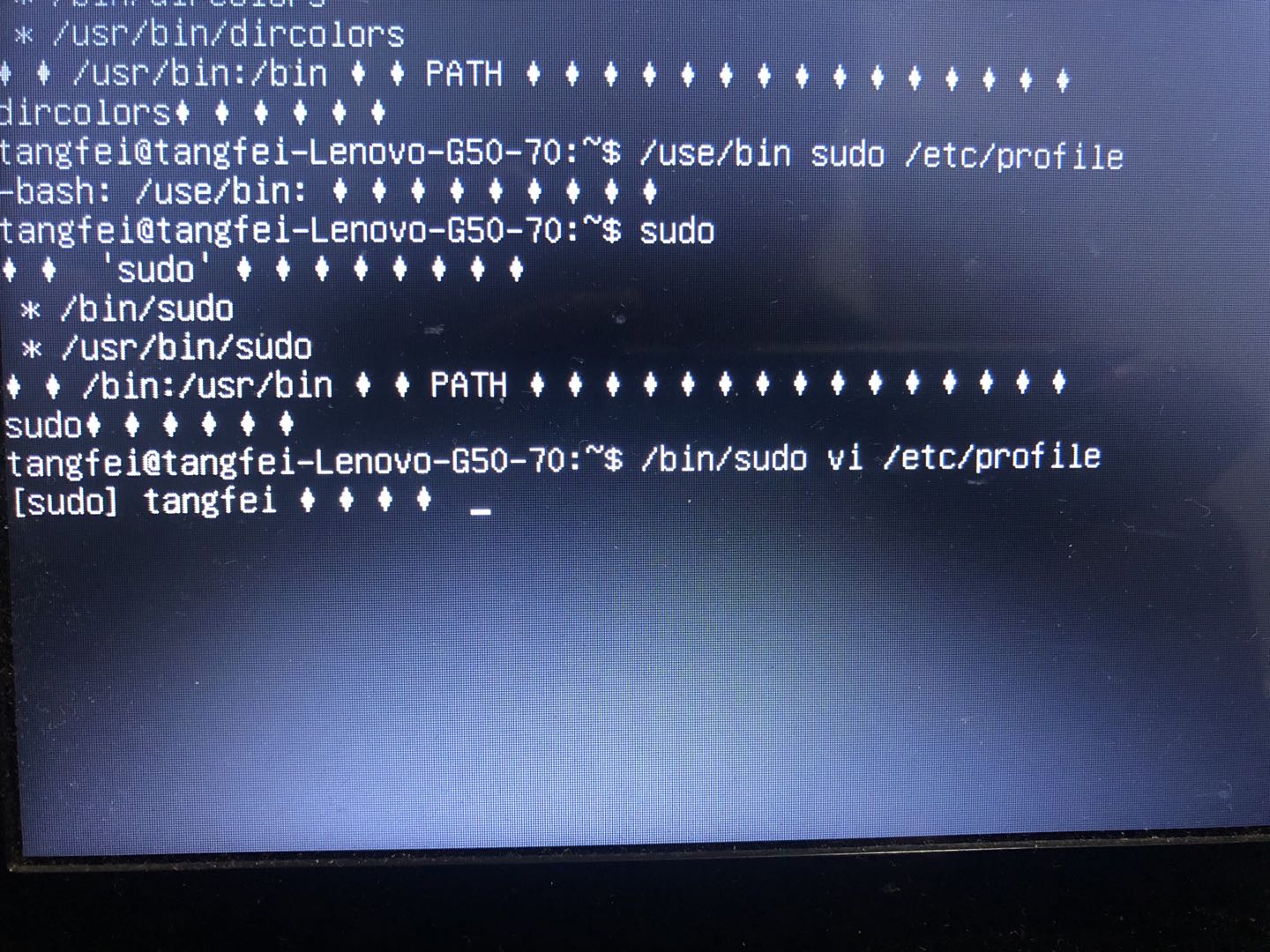 之后就是猜想的地方了,输入sudo vi /etc/profile 么的反应,这就是我第一次放弃的原因,完全不按照套路走