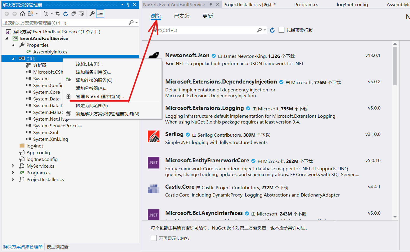 1. 添加NuGet引用,搜索net4log,并添加该引用