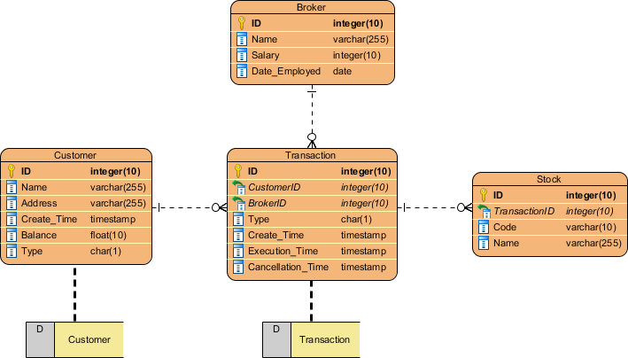 逻辑 ERD 是概念 ERD 的详细版本,通过明确定义每个实体中的列并引入操作和事务实体 (Transactional Entities)来让概念模型丰富起来。虽然逻辑数据模型仍流于高层次的设计(非为特定数据库系统而绘画),但如果会影响数据库的设计,在绘制逻辑数据模型时仍然可酌情调整。